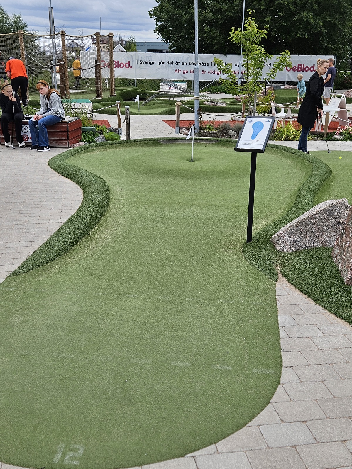 This is one of four courses at the Uppsala complex which also has an indoor adventure golf course, a Swedish felt course and an Eternit (miniaturegolf) course. The last two were part of the 2023 Minigolf World Championships General Class, which was happening while we were there. As a result we didn’t get to play those courses or the indoor course (except for a few holes) because that area was used as the staging for the administrative work around the championships. The one round we did get to play on the outdoor adventure course was with several members of the World Minigolf Sport Federation (WMF)’s Executive Committee, which ended up being great fun.